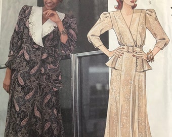 1940s Unique Peplum Dress Pattern Vogue Special Design 4693 Flared Skirt Dress 2 Necklines Includes Cravat Bust 30 Vintage Sewing Pattern